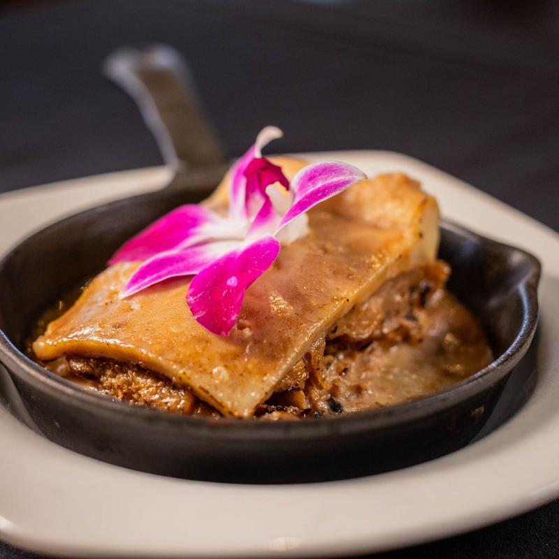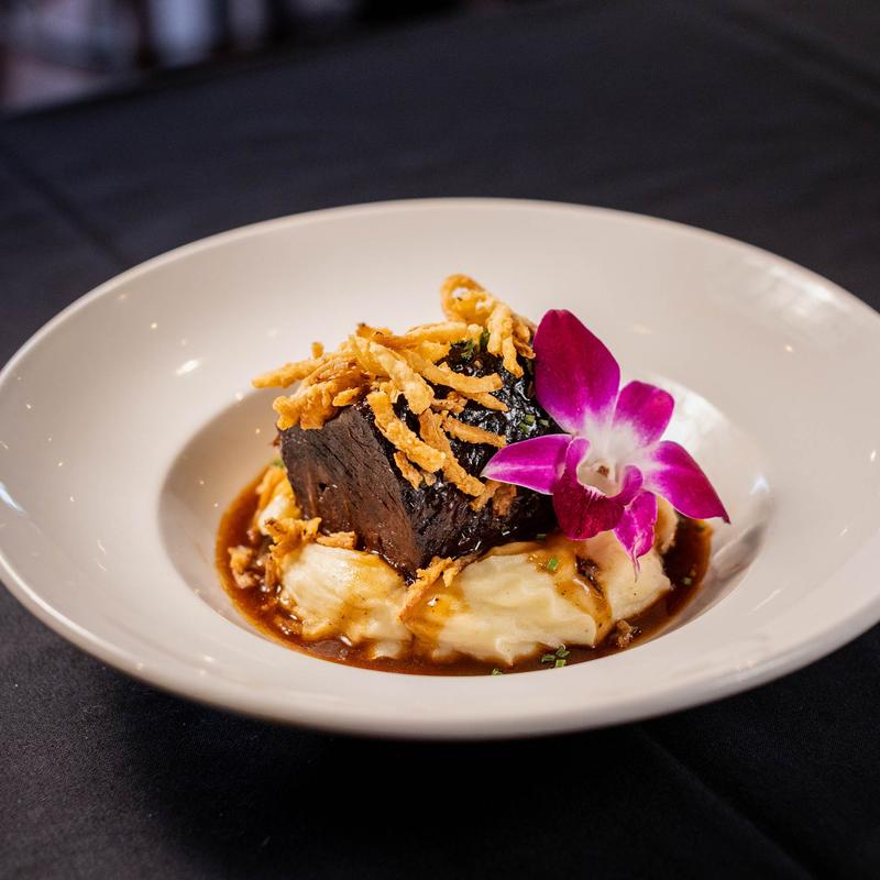 Braised beef short rib, deliciously topped with Cajun Ragu and Tobasco-infused onion rings. Served on a bed of whipped potatoes.