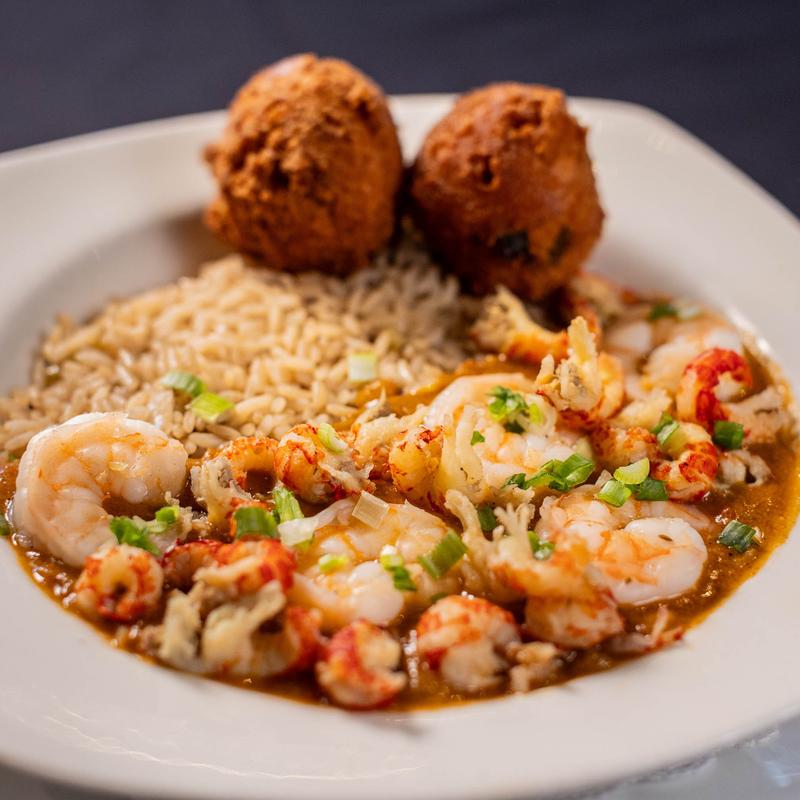 Savory crawfish and shrimp simmered in our buttery roux. Served on a bed of rice